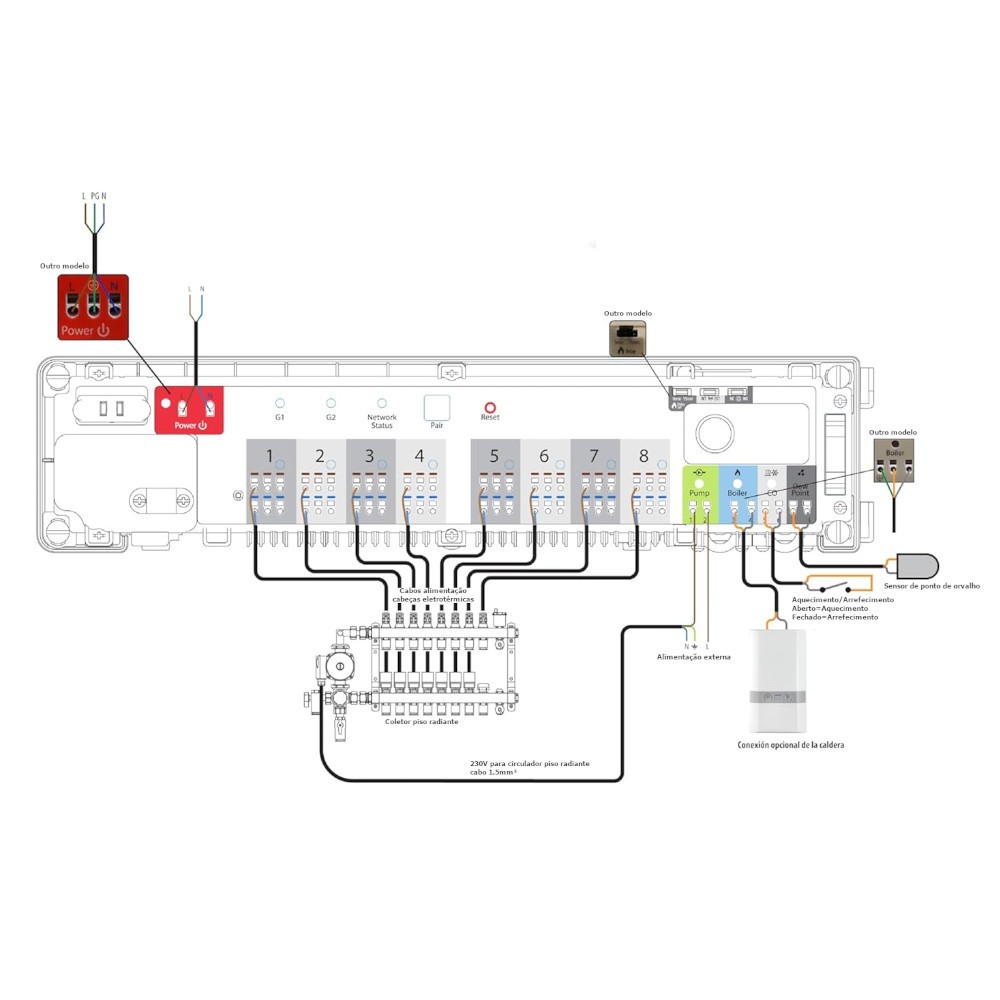 SALUS CAIXA LIGAÇÕES PISO RADIANTE KL 08RF 230V