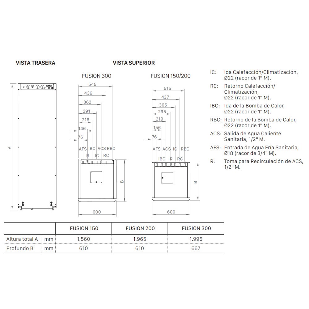 TERMOACUMULADOR C/MÓDULO HIDRÁULICO INTEGRADO FUSION 150L