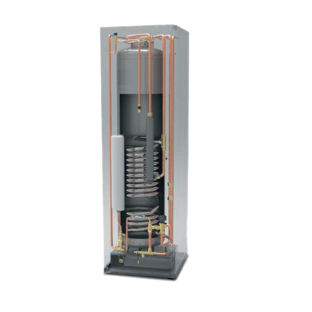 O termoacumulador de água quente sanitária é construído em aço inoxidável de alta qualidade com um permutador de calor sobredimensionado especialmente concebido para bombas de calor ar-água.